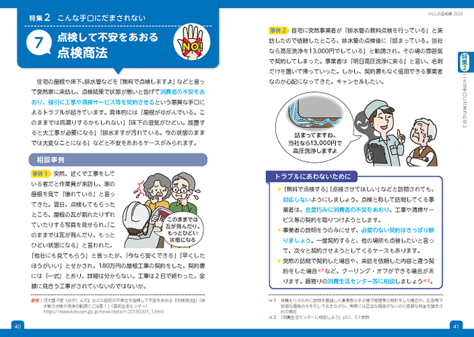 消費者トラブルの対策に役立つ情報や、日常にかかわりの深いテーマを幅広く取り上げて、コンパクトにまとめた冊子です。4月から新しい生活をスタートする人や、消費生活関連の勉強をする人におすすめです。ぜひお読みください。