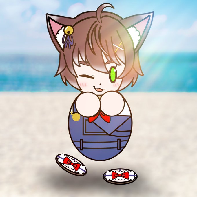夏服かしわねこ ウインクを添えて #かしあーと