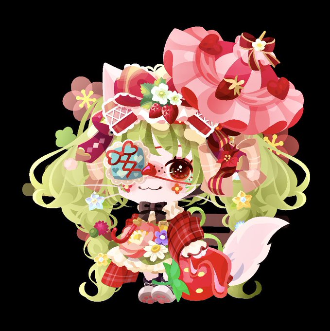 GREEN×RED🍓❁⃘*.゚ #ポケコロ #子猫といちごを摘みに #かりにゃんコーデ