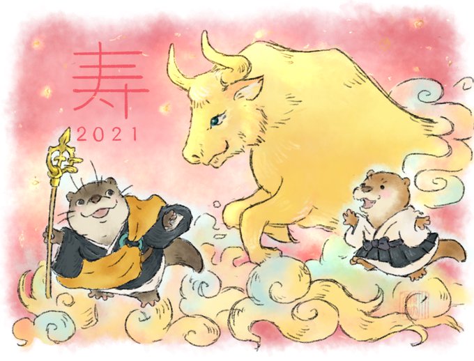 ほんとにほんとに 今更ですが 本年もよろしくお願いします🙏🙏 #お絵かき #カワウソ #かわうそウソ大師