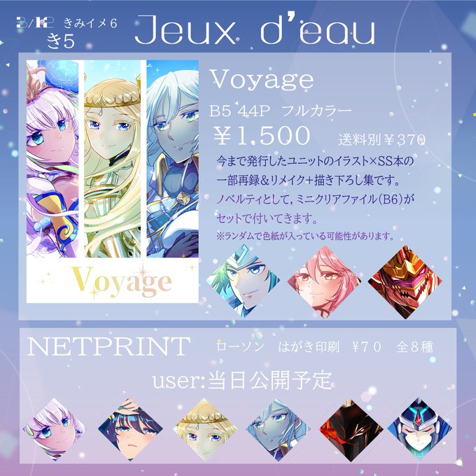 本日はスペースにお越し頂き本当にありがとうございました!尚、今回の参加をもってJeux d'eauは最後になります。応援してくださった皆様ありがとうございました・・・!えりさんや私個人でのイベント参加は引き続き行いますので見かけた際はよろしくお願いいたします #きみイメ6
