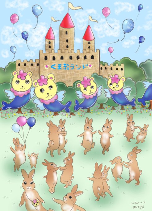 #くまぎょランド#描かせていただきました#うさぎ#ルー#ルー分身#ピクスケ描き うさぎたちのピクニック、どこまでも歩いて行ったら……。「あ!あれはなんだろう⁈」 そこは楽しい、く... https://t.co/QLfTMrDHxp