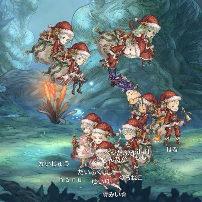 日付変わって探索point消化してたら つかさちゃんと遭遇♪ →つかしゃんもいたー☆ →探索しようぜ~ ちぇねたん参戦♪ →ぽぽ発見♡ →5人いるしお正月イベEXやろ~! →空賊メダルミッション消化~! 楽しい ファティマぐる活でした♪ よいお年を! *\(^o^)/**\(^o^)/**\(^o^)/**\(^o^)/*
