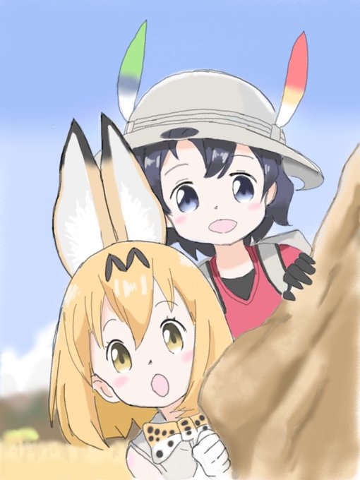 .@kkkkkkkkkk024 『けものフレンズ。1人の女。フェネック耳。狐耳。金髪の短髪。桃色セーターベスト。白の肘手袋。リボンタイ�』