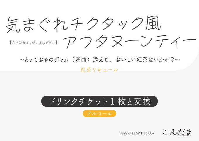 今回からオリジナルカクテルと #こえだまリクエスト 始まります、是非ご参加の方はご利用ください!