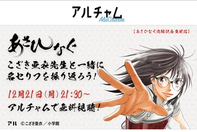 あさひなぐ完結記念、「#こざき亜衣先生と名セリフを振り返ろう!」のライブ配信!12月21日 21:30~