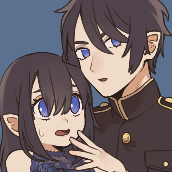 黒髪+黒眼…を青系で表現する(⁈)(というか黒髪黒眼を青で塗るのが好き)