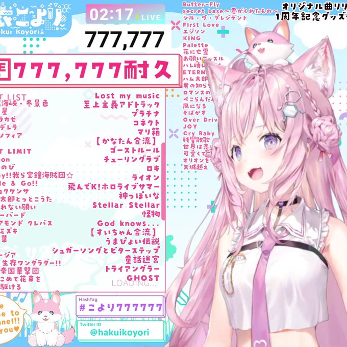 こよりちゃん777777人おめでとうございます