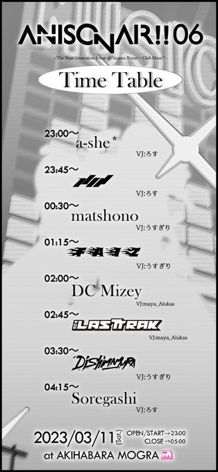 📅3/11(Sat.) 23:00~05:00