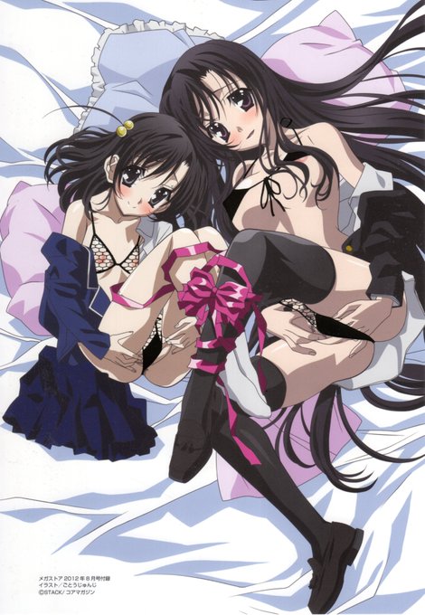 今日の発掘品その3。コアマガジン刊メガストア2012年8月号付録「ごとうじゅんじ描き下ろし桂言葉&心 温感お風呂ポスター」。温度で画像の黒い部分が見えるようになるそうな・・・。