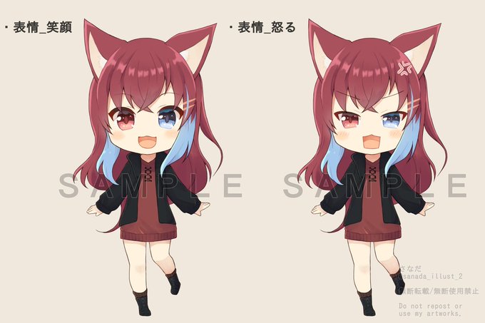 先日、緋城リイド様(@akashiro_ried)よりご依頼いただきSDキャラと表情パターンを制作させていただきました。