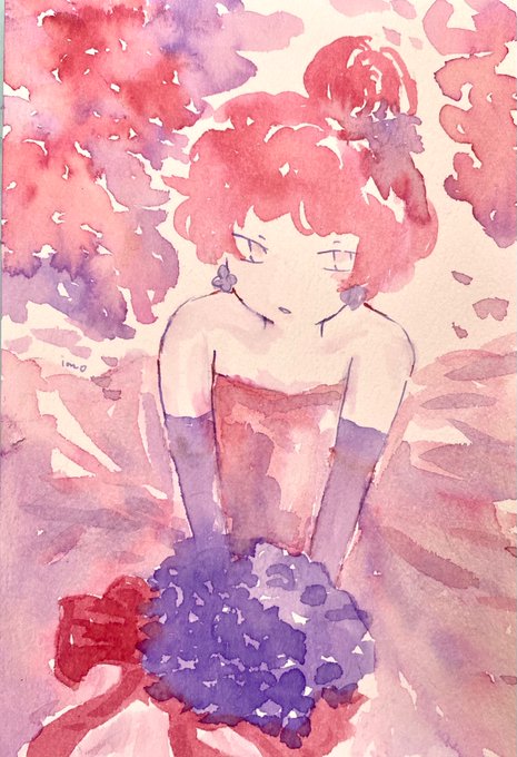 リハビリにツインテ詩雨ちゃん さみしがりのピンクと海松藍、インクの透明感と水の滲みが気持ちいい