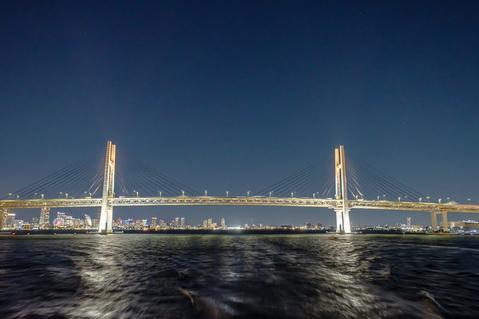 ベイブリッジ、レインボーブリッジ、羽田空港やコンテナ埠頭の夜景がきれいだった。