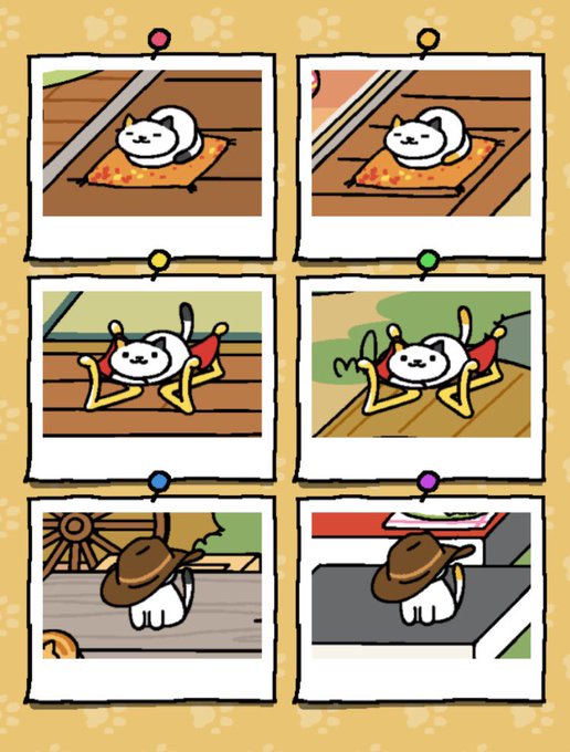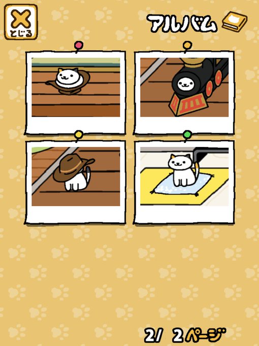 ごめん寝を見かける度にとってたらアルバムに一瞬ほぼしろねこさんごめん寝特集に見えるページが。実際はしろみけさんとぽいんとさんもいるから3枚がしろねこさん。でも半分しろねこさんってww #ねこあつめ