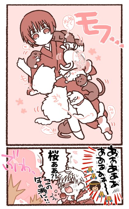 リクエスト『ネコたりあちゃんと菊おじいちゃん』! 魅惑のモフモフでテンション満開になったおじいちゃん漫画を添えて🌸🌸🌸🌸🌸 利玖(@sleeeptimee)さん、リクエストありがとうございました😇🙏