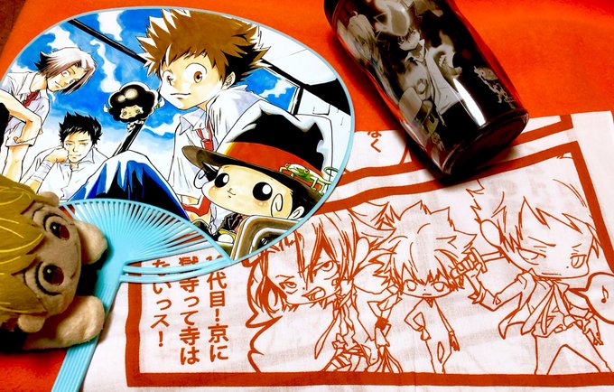 ニーコちゃんがREBORN!うちわでキメてくれたり🎩すぐるんぱ⚾️やいっちー💣が天野明展の手ぬぐいやリボコンタンブラー使ってたりするリボーン 愛よ✨