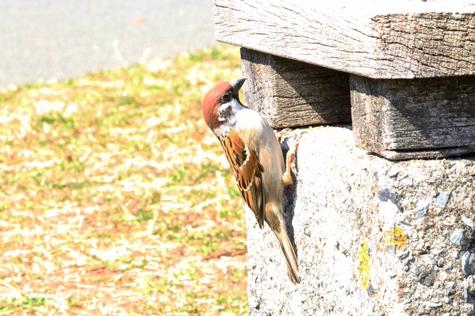 キツツキでしょうか? いいえスズメです。 #ちゅん活 #すずめ #スズメ #sparrow #すずめたちのいるところ #雀