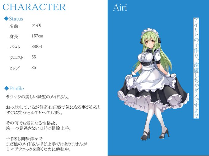 次回作に登場するメイドさんをご紹介!アイリちゃんです!今回もとっても可愛いメイドさんがあまあまなご奉仕をしてくれます!