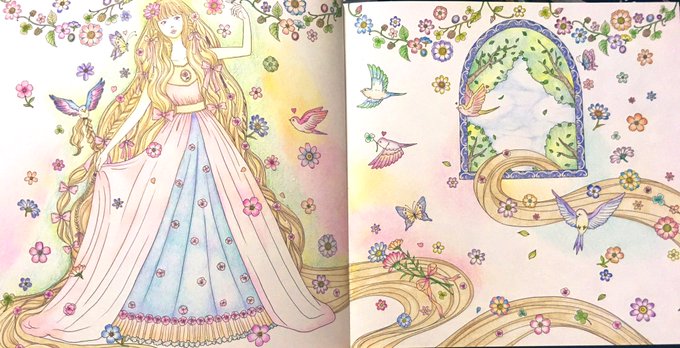 だいぶ前にたけいみきさんのインスタライブ見ながら真似して塗って放置していたものを仕上げました。なんか可愛いく塗れた気がするー(*^^*) #大人の塗り絵 #色鉛筆 #夢色プリンセス塗り絵