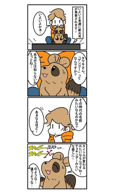 たぬきのポコちゃん 「ゲンゴ―って何ですか?」 ゆるふわぽんぽこ系4コマ漫画! 毎週月曜日と木曜日のお昼12時に更新してます! #たぬきのポコちゃん #漫画 #4コマ #オリジナル #創作 #タヌキ #ポコ