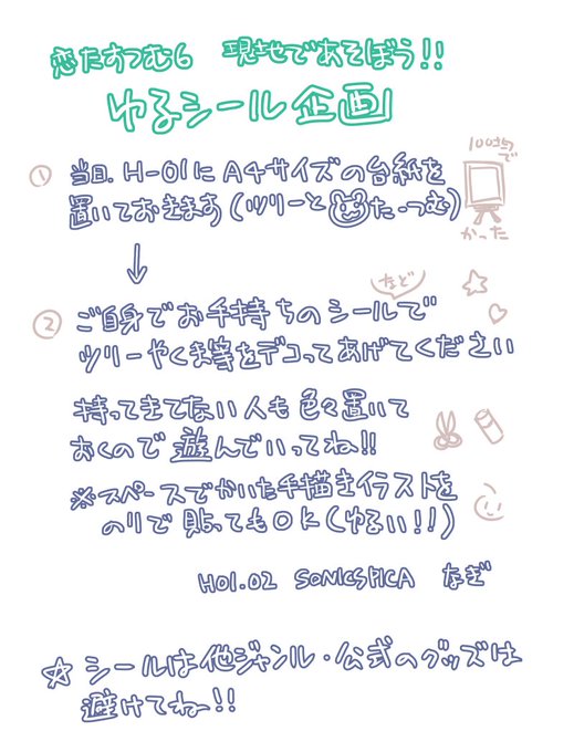 シール企画やります!H-01のスペースにツリーと🧸たーつむのボードを置いておくので、お手持ちのシール(他ジャンルとか公式のシールとかでなければなんでもOK)でデコってあげてください!