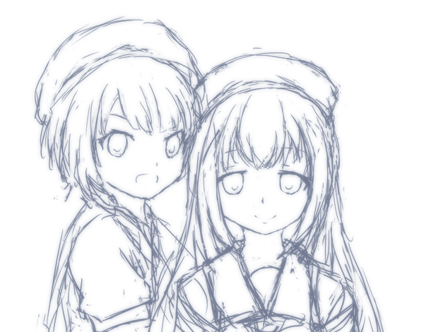 みみけ表紙用のチノちゃんラフとちまめ隊タオル~