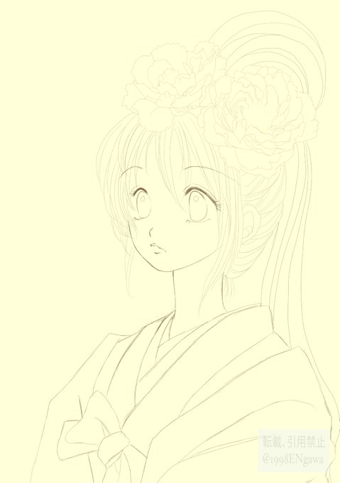 途中で着物の柄を直してるんですよね。これじゃ牡丹だと😅
