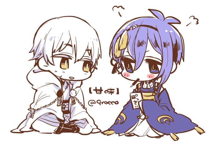 諸事情により1時間がっつりできませんでしたけどほぼワンドロ!いつもにこにこしてる三日月さんがじっと黙ってるとちょっとどきどきする鶴丸くんとか… #つるみか版深夜のお絵かき60分1本勝負