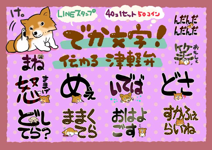 でっかい文字の津軽弁スタンプです😌見やすくて伝わるスタンプになってますのでどうぞよろしくです✨ワンコ好きさんにもオススメです🐶