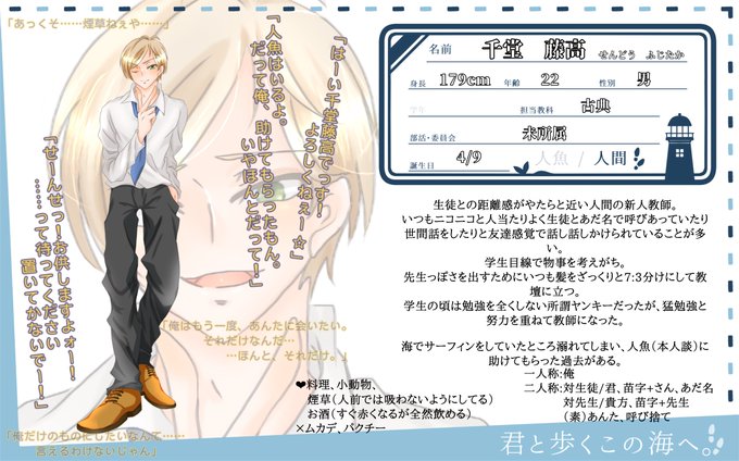 こちらの企画様【@Toko_s_TL】へ2人目、人間のの教師でお邪魔致します。恋仲のご縁は頂いておりますがその他は真っ白ですのでゆるりと遊んで頂けたら幸いです✨どうぞよろしくお願いします🙌
