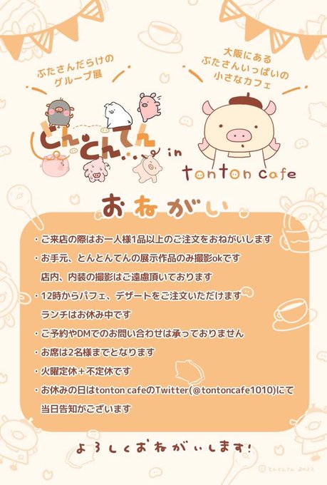 今日22日まで大阪のtonton cafeさんで #とんとんてん in #tontoncafe 開催中です🐽✨