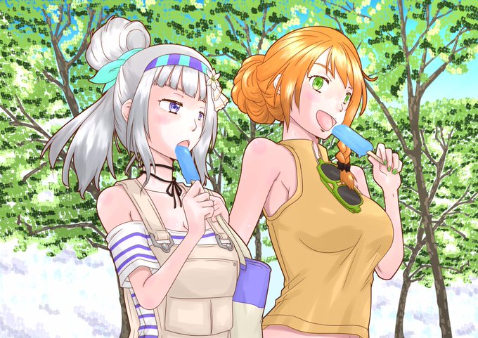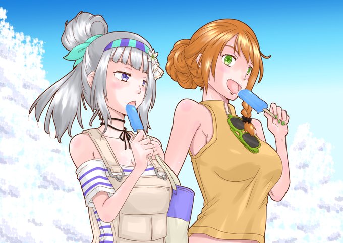 なぎゆり夏の一コマ。 まぁアップの髪型描きたかっただけとも言う。 #なぎゆり #白百合さん #白百合アート #勇凪エレナ #絵レナ