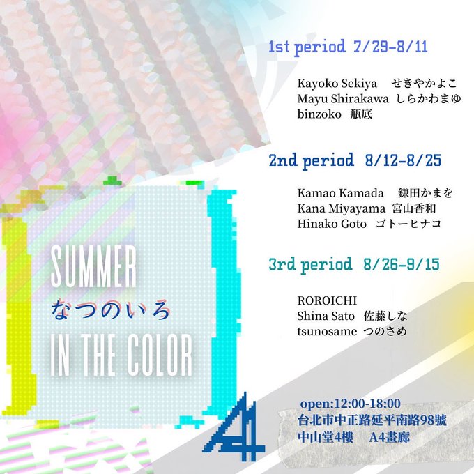 A4畫廊2022夏季聯展 『Summer in the color -なつのいろ-』 九位藝術家的36件作品終於在最終章中匯集在一起。夏天快結束了,來A4畫廊接受新人才的洗禮吧! https://t.co/08LSxeZ8RH