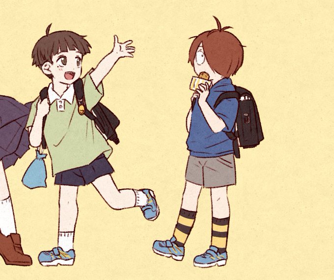 ・ラ…ドセル 象徴となるので造形描くの好きです。きゅぅしょくセットとか防犯ブザとかが下げられてて、♂の子なのでヨレヨレになってて、みたいなのこねこね考えます。