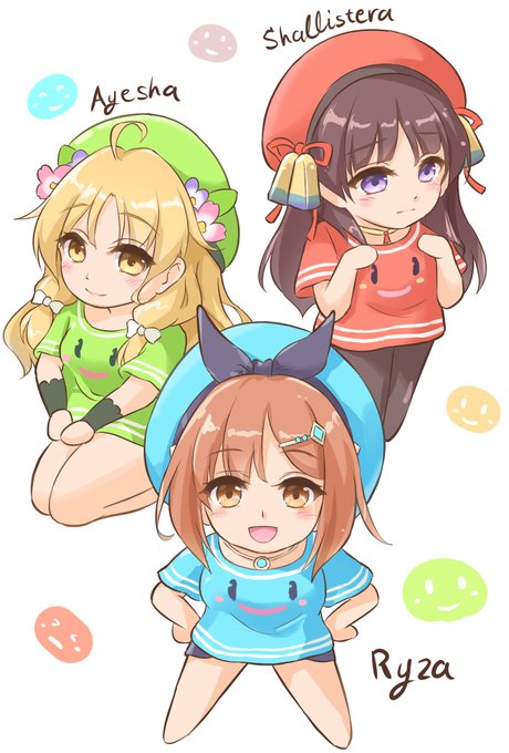 なりきり青ぷにTシャツがあるなら 緑ぷに、赤ぷにTシャツも存在する筈だと思いました。 (ひとまずアーシャとシャリステラで試着) #アトリエシリーズ