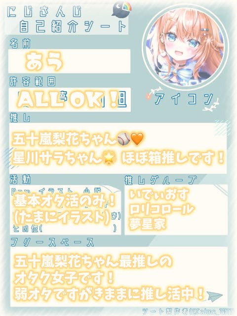 #にじさんじ自己紹介カード #にじさんじ好きさんと繋がりたい #にじさんじ好きな人と繋がりたい #にじさんじ絵描きさんと繋がりたい