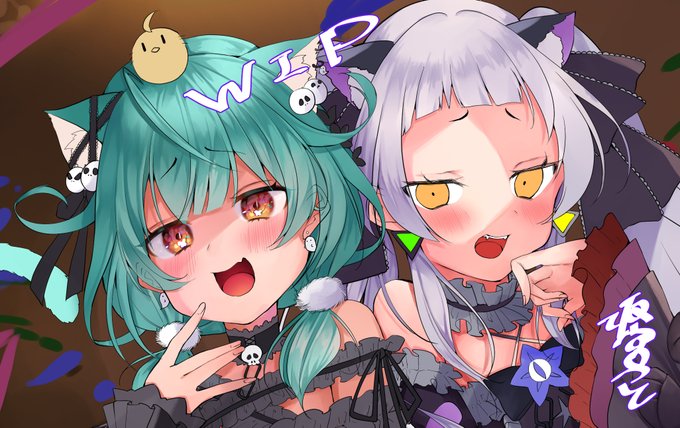 るしあとシオンのねこねこイラストWIP