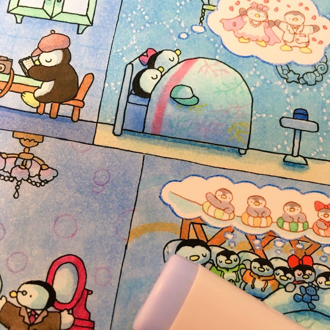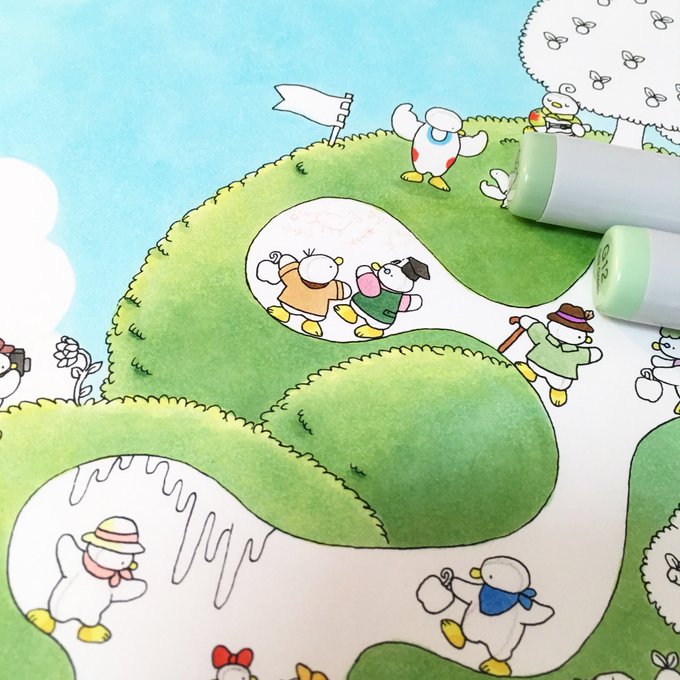 #のはな新刊絵本O 次の新刊はファンタジーっぽい雰囲気になるように、コピックの上から、色辞典で細かくタッチを入れるのです。 でもまだ色辞典の新色をお迎えできていない…(;-;)