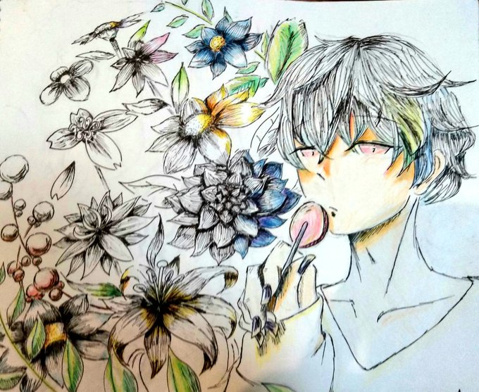 お花描きました。はるさんの動画がめっちゃ役に立って,前よりは少しコツが掴めた気がします