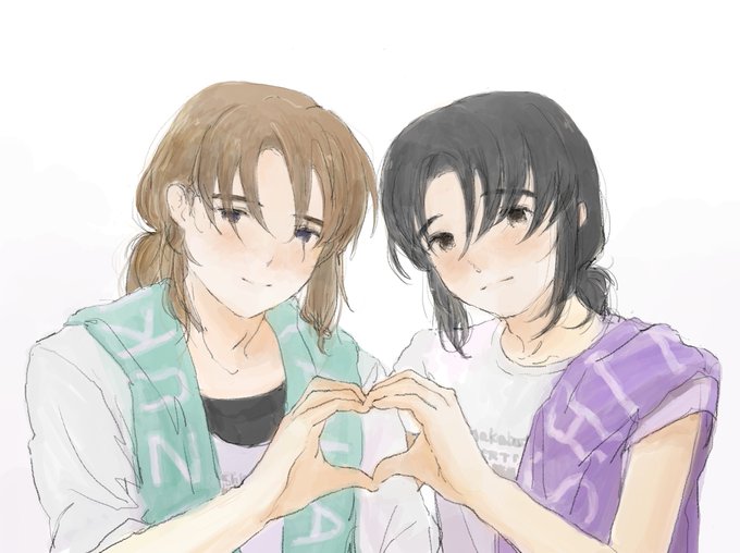 はぎれさん@ohanashidekiruの描かれたhttps://t.co/UZbjtdlLeUの、おにぎり渓谷さんとあおざめ舎さんの合同誌の表紙イラストを参考にさせていただきました ありがとうございました