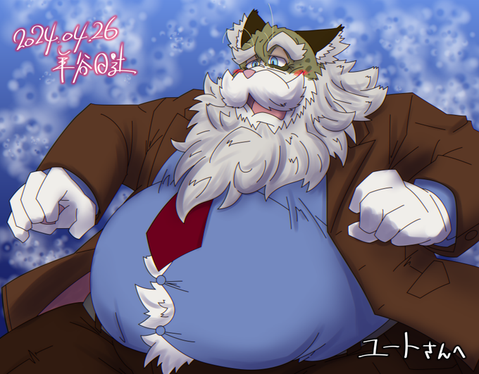 クライアントさんが確認されたようなので、ミニサイズ版をアップします。ユートさんの代理くんが、不思議な本の力で太ったお爺ちゃんになっちゃいました。変化前の姿は以前にツイッターでチラ見せしてたんですけど、タグを付けるの忘れてたんですよね。 #ひつじのすけぶ
