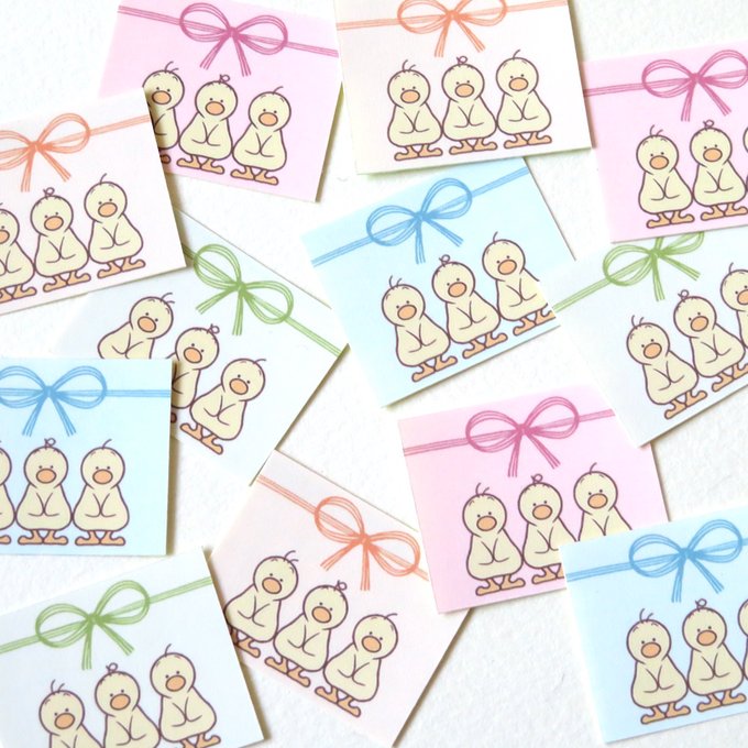 ひよこが悲惨な目に遭うアクキーができた〜♪ひよこ展に持って行きます〜♪パックに詰められたりサメに噛まれたりヘッドホンに挟まれたりしてま〜す♪