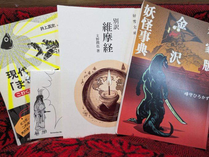 ご挨拶させて頂いた皆様ありがとうございました!!秘本衆道会さんの古典本、好雪文庫さんの維摩経現代語訳、峰守ひろかずさんの金沢妖怪事典、砂味さんの現代ますように考も入手出来ました!! #文フリ京都