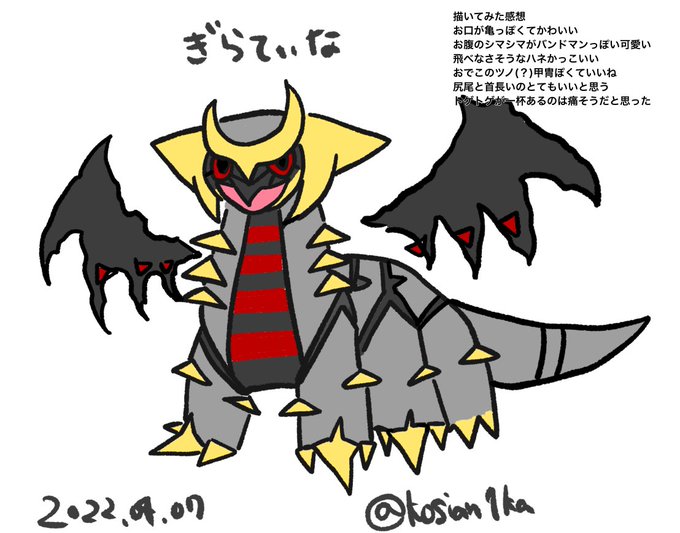 初めてのポケモンお絵描きがギラちゃんなのは難易度てきにどうかと思ったけど落書きだから許してください。