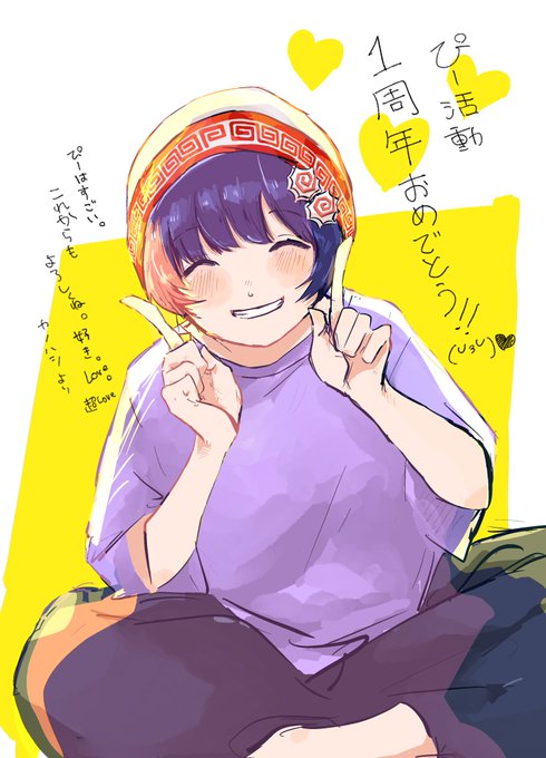 #ぴす絵 ぴー1周年おめでとぅ💜😚🍜