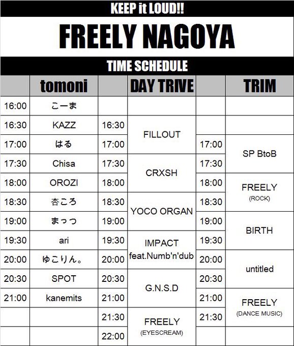 3/13 16:00〜FREELY NAGOYA #ふりりば @名古屋DAYTRIVE/DAYTRIM/tomoni