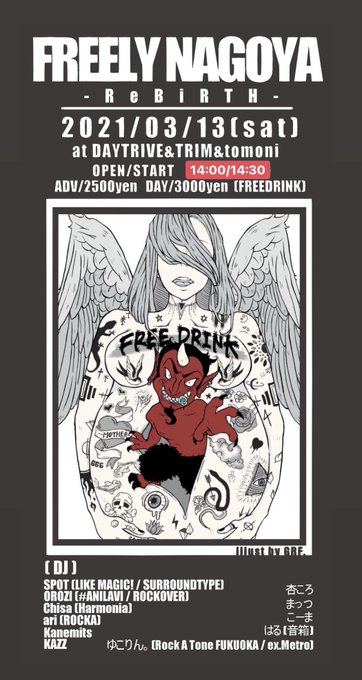FREELY NAGOYAの復活回 #ふりりば は3/13(土)16時から DAYTRIM系列3会場で開催!全国から集まった強すぎるメンツと共に飲み放題というウルトライベント!とにかくはちゃめちゃに楽しんで、かつ生きて帰る!オススメの二日酔い対策教えてください!