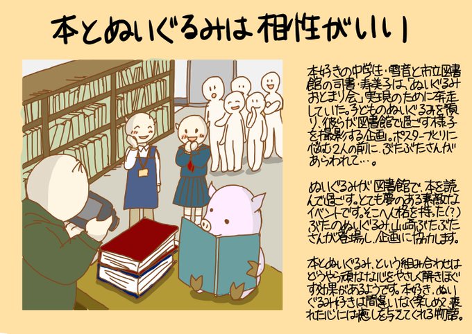 ぬいぐるみが、夜中の図書館でひっそりと本を読んでいる。自力で動いて話すぶたのぬいぐるみ、ぶたぶたさんがそんな図書館のイベントに協力しつつ、関係者と読者の心をやさしくほぐしてくれるお話。