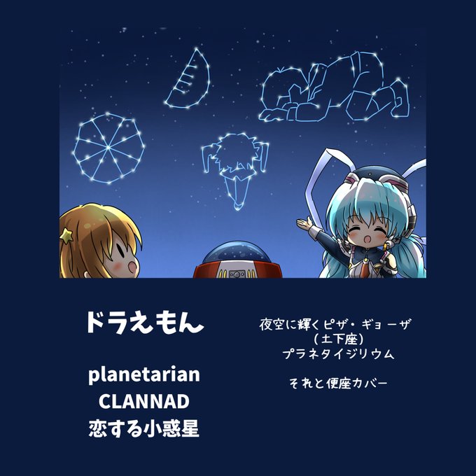 夜空にかがやくピザ・ギョーザ/水玉カプセルの旅 #クロスオーバー #ひみつ道具 #planetarian #恋する小惑星 #夜空にかがやくピザ・ギョーザ #プラネタイジリウム #水玉カプセル #それと便座カバー #ほしのゆめみ https://t.co/z4ilNexkFq
