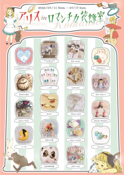 7/11〜17池袋東急ハンズさんで開催される、Romantica*雑貨室さま(@Romantica_zakka )の『アリス in ロマンチカ装飾室』に参加させていただきます⑅◡̈*ぼぶずさんのビジュアル画すごい可愛い〜!!